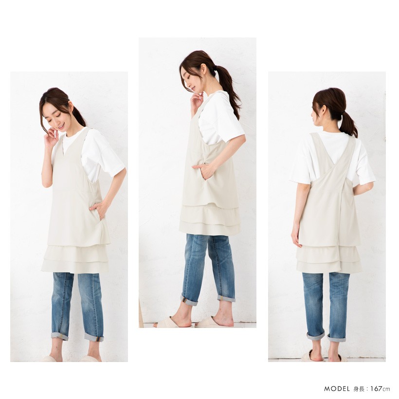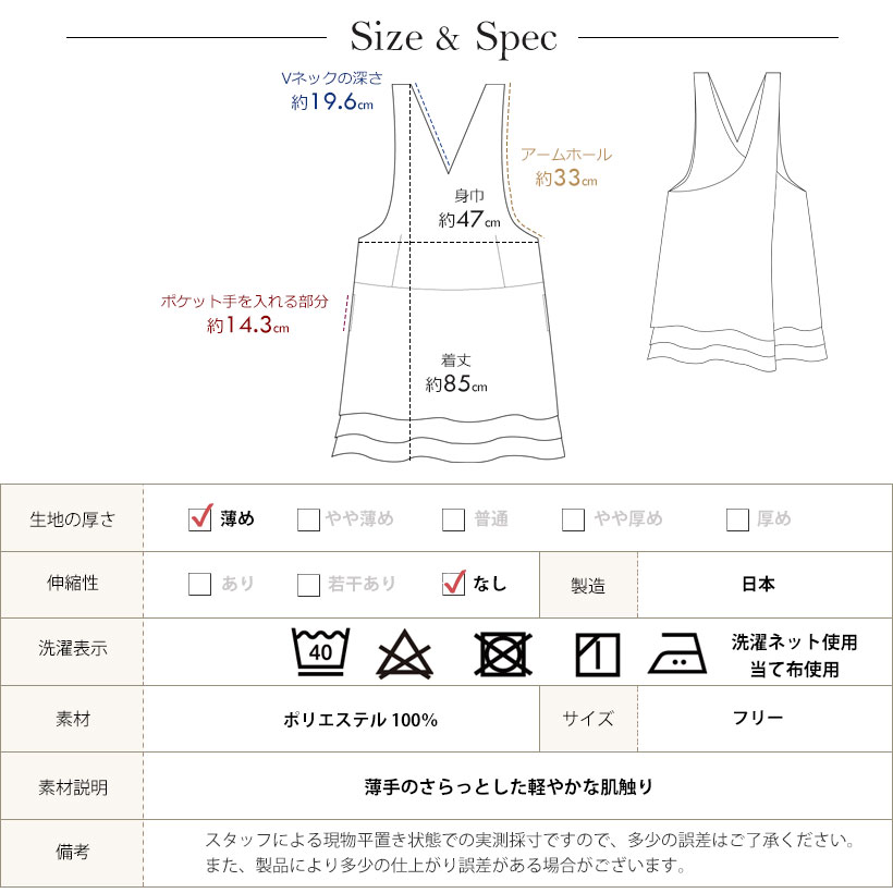 | 【特徴】 超軽量の約220g!とっても軽くてストレスフリーな着け心地! 裾のふんわりフリルが大人可愛いカバーエプロン♪ 薄手でサラサラの 軽いポリエステル素材♪ かがんだり 座ったりなどの作業もしやすく、とっても動きやすいデザインです♪ 左右にポケット付きで使い勝手も◎ 上からかぶるだけの簡単着用。 デザインやサイズ感にこだわった、丁寧な作りの日本製エプロン。工場直営のエプロン専門店 エプロンストーリー ならではの高品質エプロンは、ギフトやプレゼントにも最適です。 【製品仕様】 ■品質:ポリエステル 100% ■素材説明:薄手のさらっとした軽やかな肌触り。 ■サイズ:フリー ■生地の厚さ:薄め ■製造:日本 |
