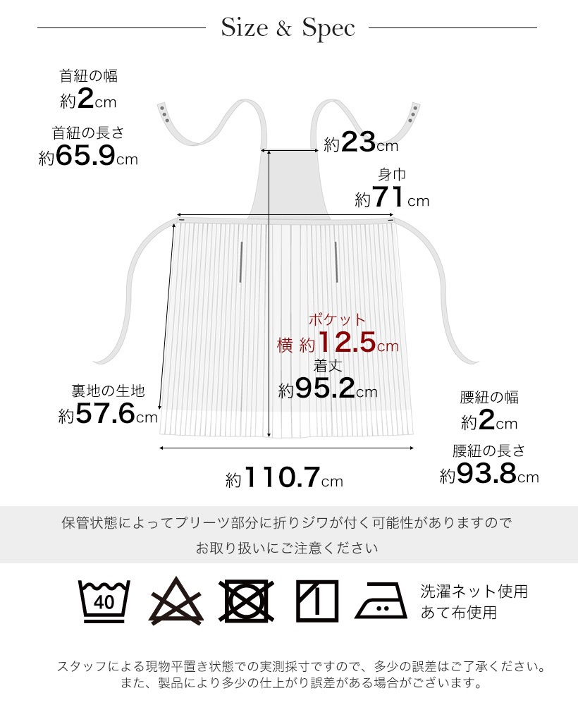 保管状態によってプリーツ部分に折りジワが付く可能性がありますので、取り扱いにご注意ください。 |