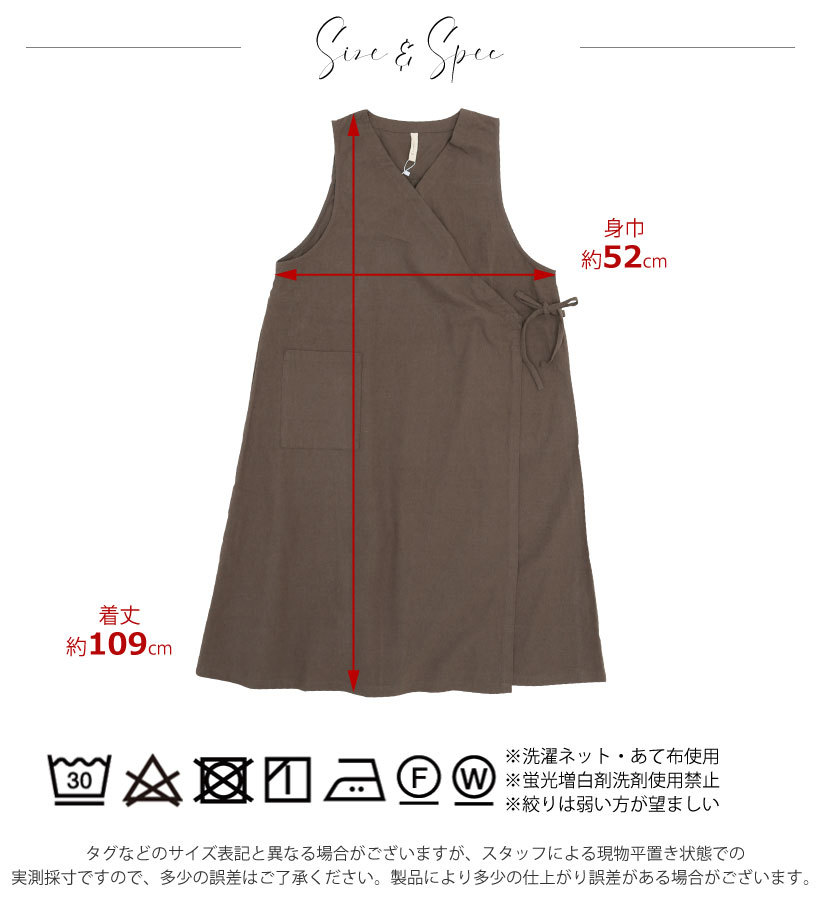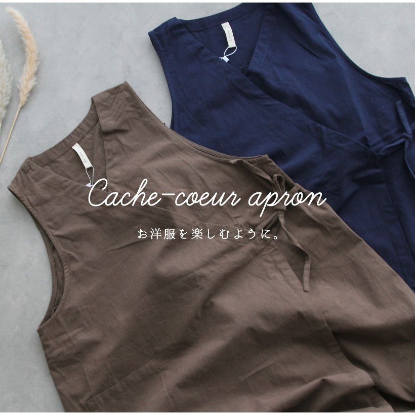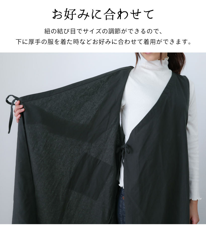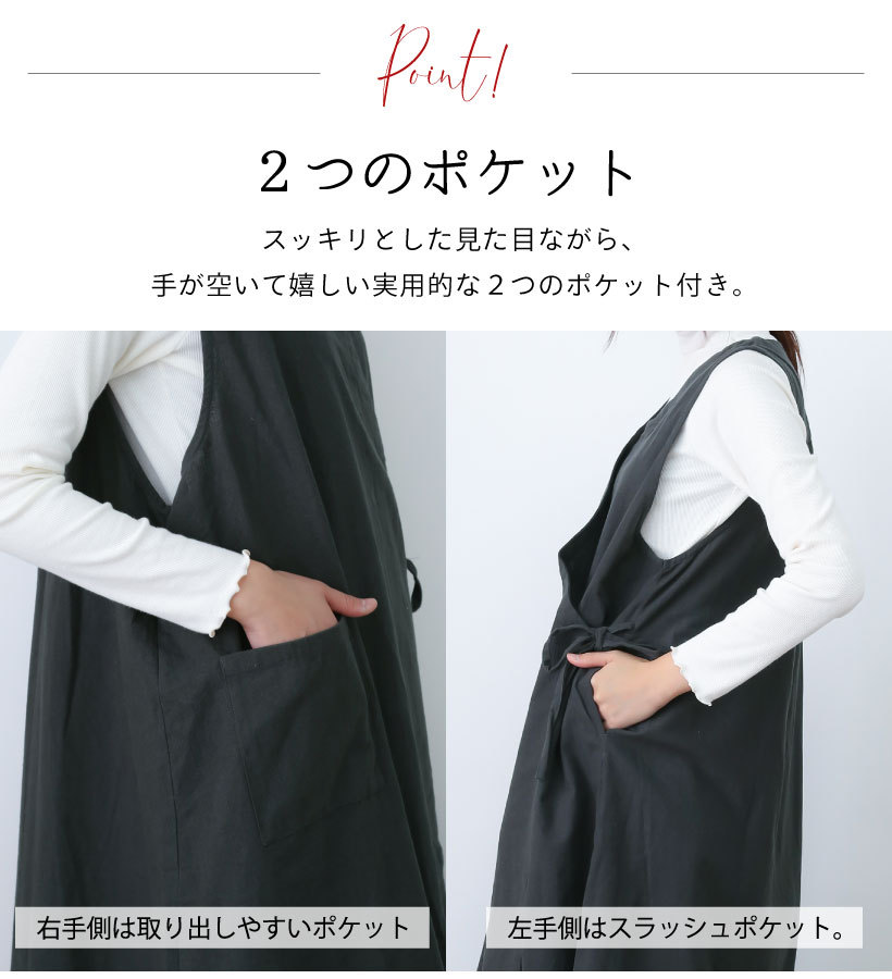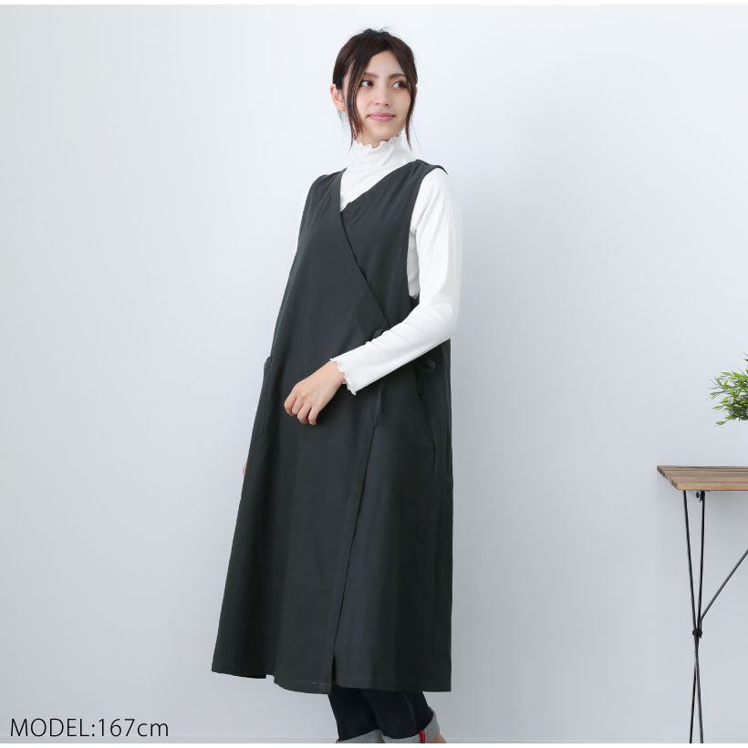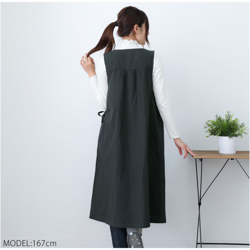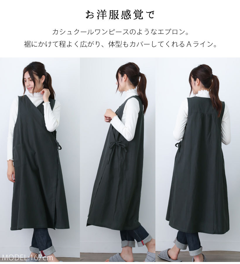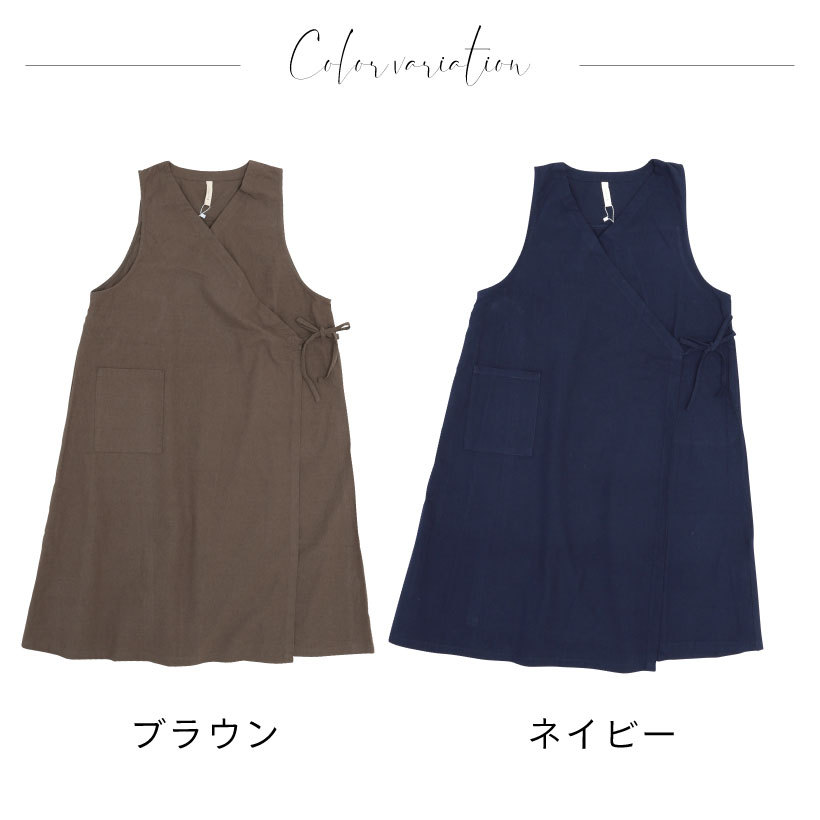 | カシュクール ワンピース エプロン 袖なし ひざ下 体型カバー Aライン 秋 おしゃれ 無地 グレー ブラウン ネイビー ブラック ゆったり レディース 女性 家事 コットンリネン 綿麻 Cloudnine |