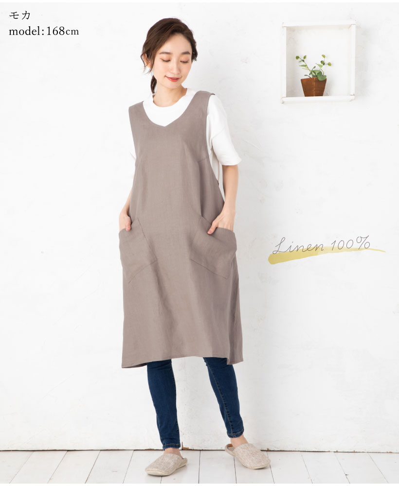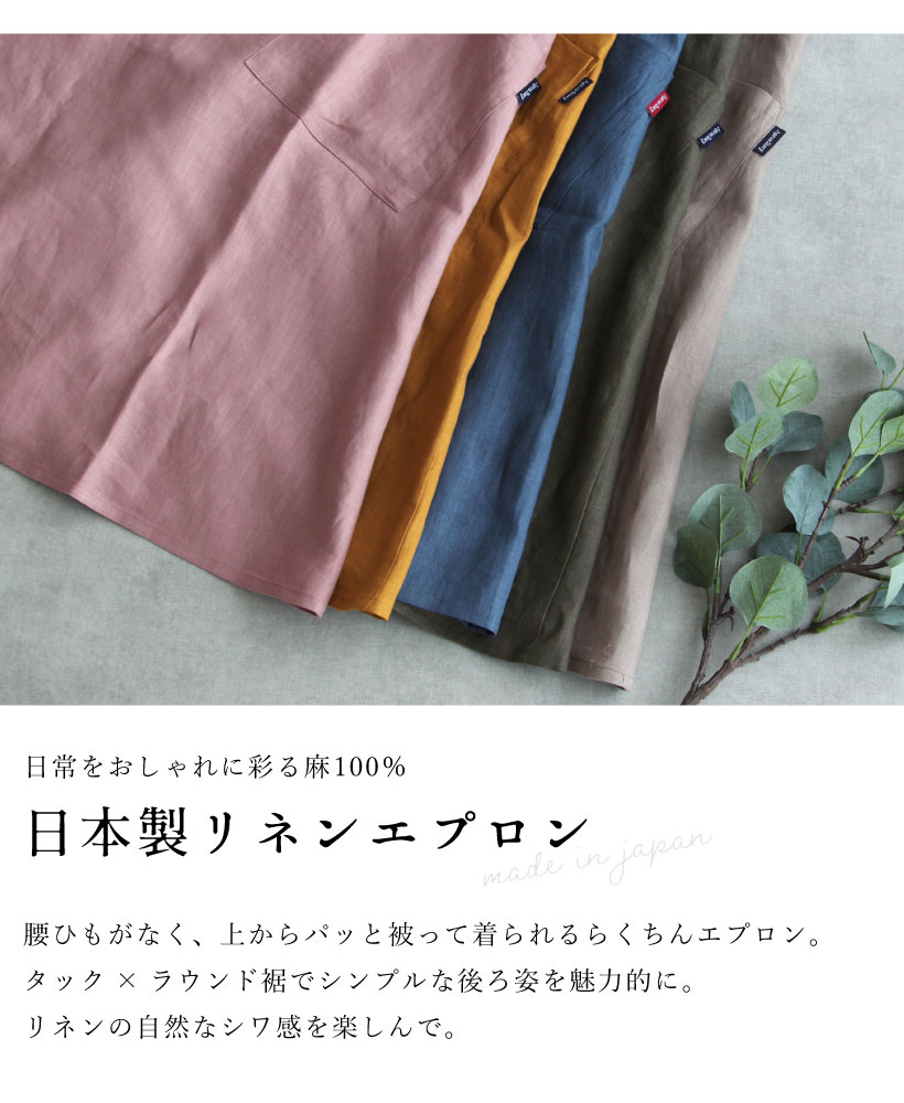 | リネン 麻 無地 バッククロス 上から かぶって ひもなし らくちん 楽 簡単 かぶるだけ ポケット おしゃれ 人と被らない 女性 レディース 20代 30代 40代 50代 60代 70代 プレゼント ギフト 綺麗 モカ ベージュ 藍ねずみ ブルー ピンク からし マスタード カーキ | ||