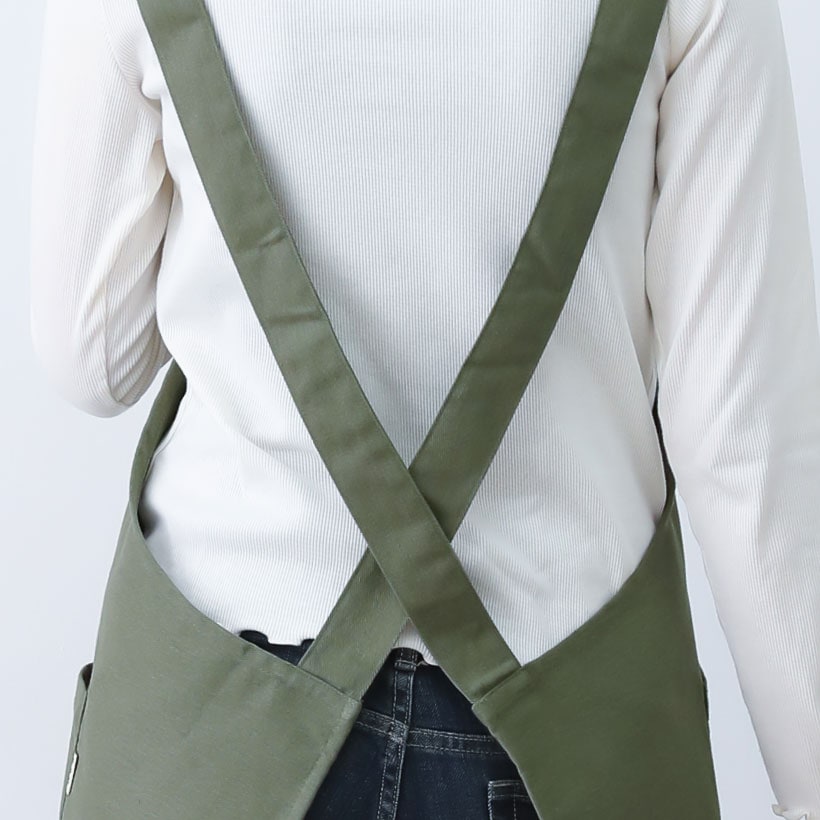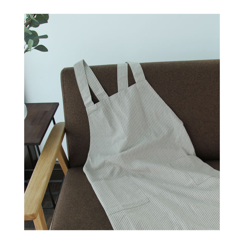 | 肌なじみの良い柔らかなリサイクルコットンを使用したエプロン。 後ろでクロスしているデザインなので紐を結んだりボタンを留める手間がなく 簡単に着れます。シンプルなデザインなのでユニセックスでお使いいただけます。 キッチンだけでなく、お掃除やDIY、仕事着としてもおススメです。 | ||