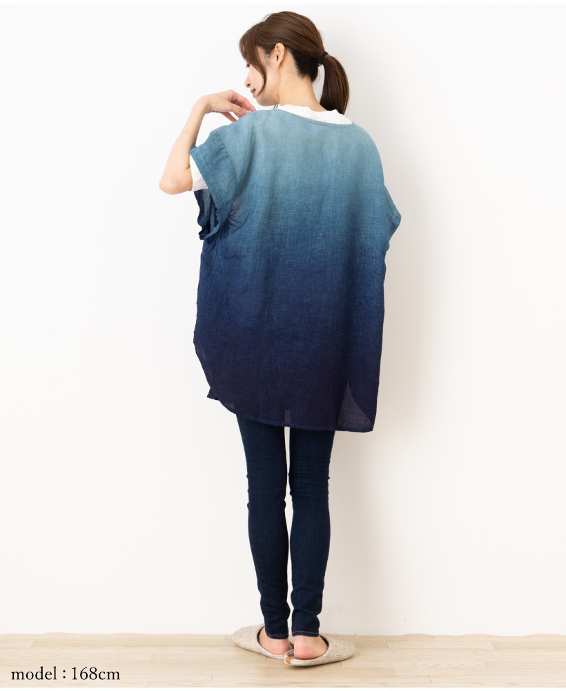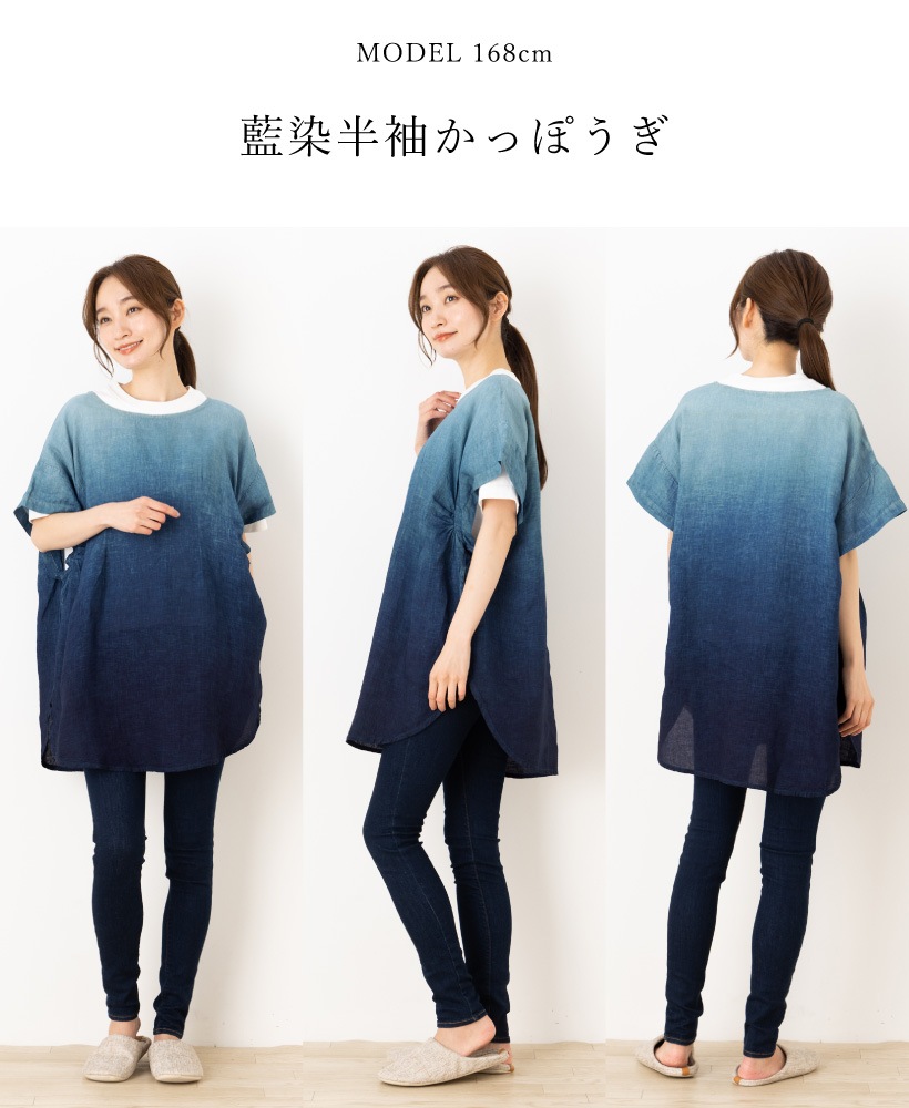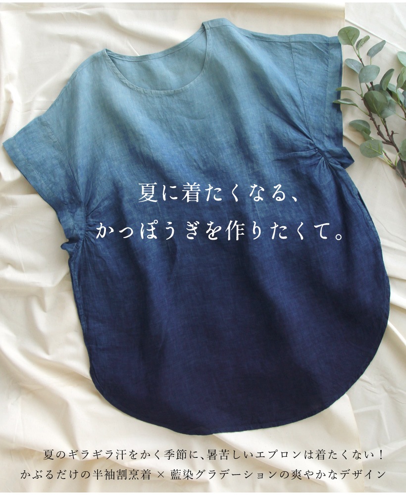 | 藍染 藍染め 本藍染 グラデ ブルー ネイビー 半袖 割烹着 かっぽうぎ 割ぽう着 夏 ひざ上 ポケット 大人 女性 ミセス 30代 40代 50代 60代 70代 母の日 プレゼント ギフト 麻 リネン | ||