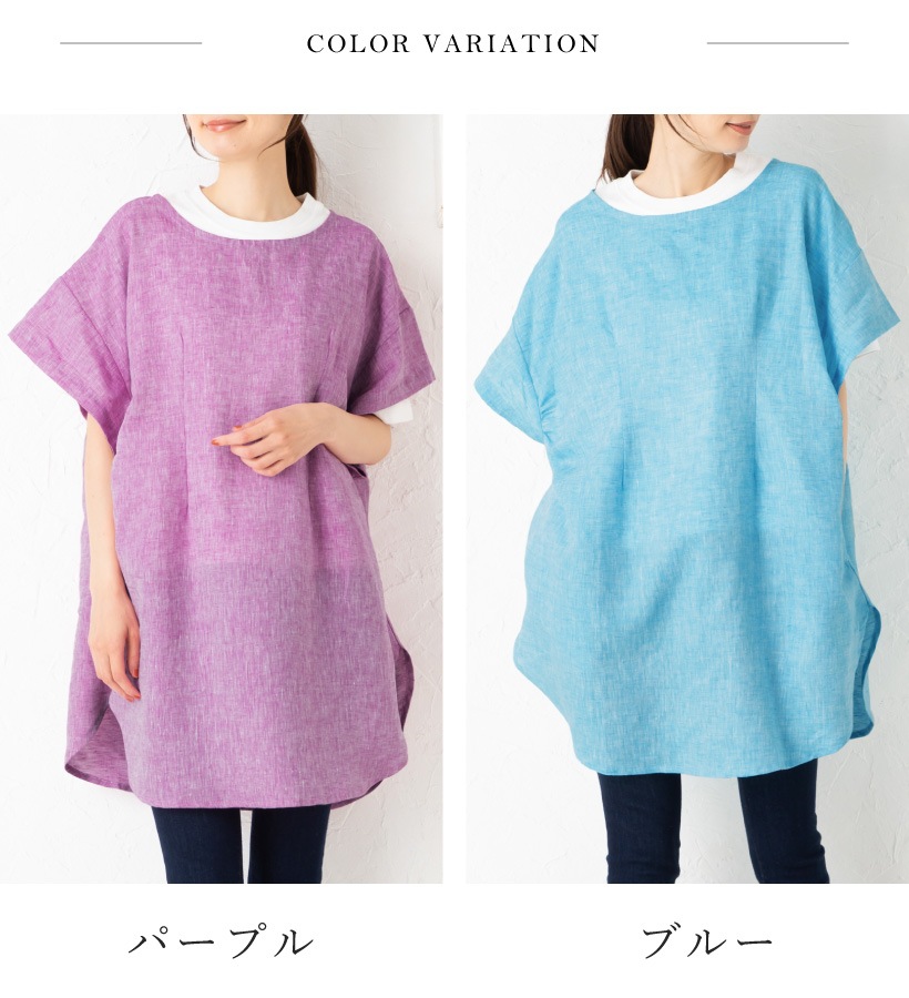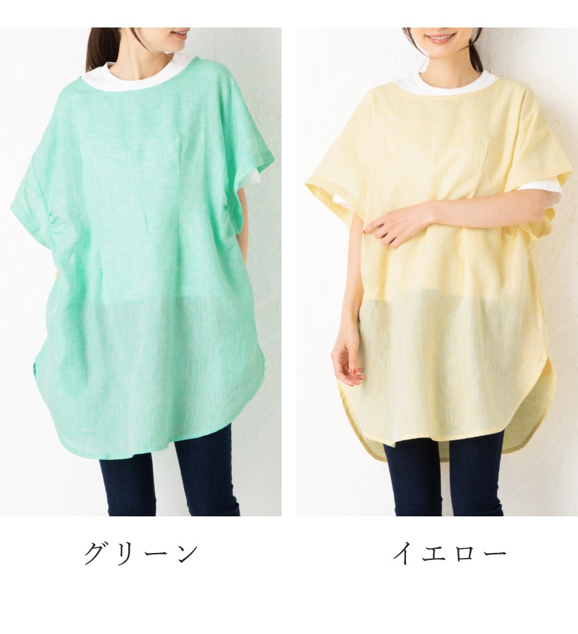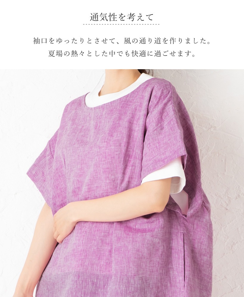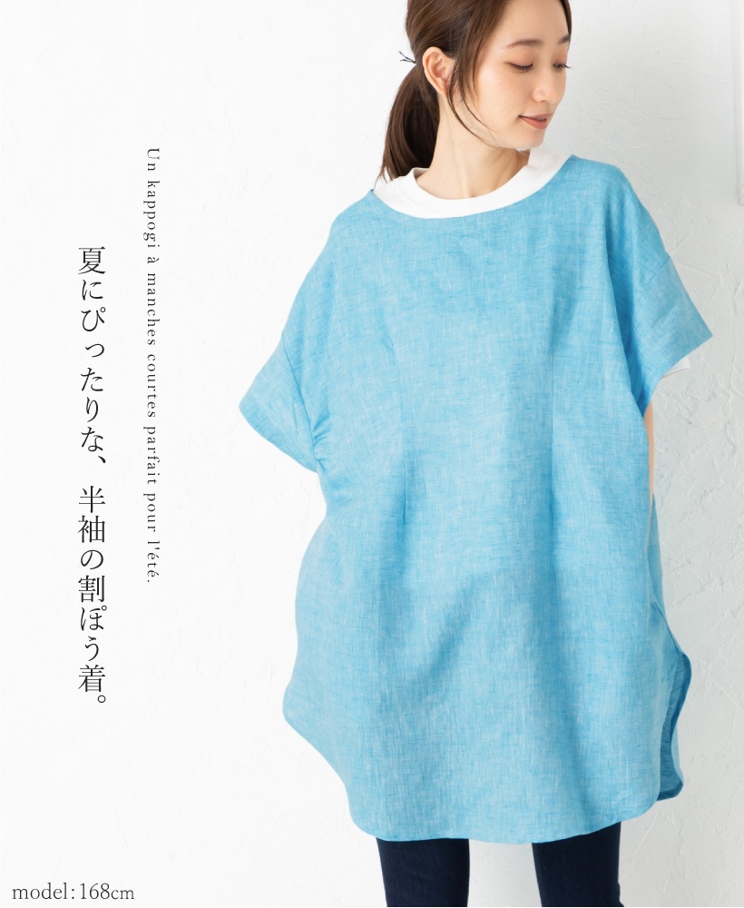 | 麻 リネン 半袖 割烹着 割ぽう着 無地 イエロー パープル ブルー グリーン ゆったり 大きめ ラウンド ポケット 夏 プレゼント ギフト 40代 50代 60代 70代 | ||