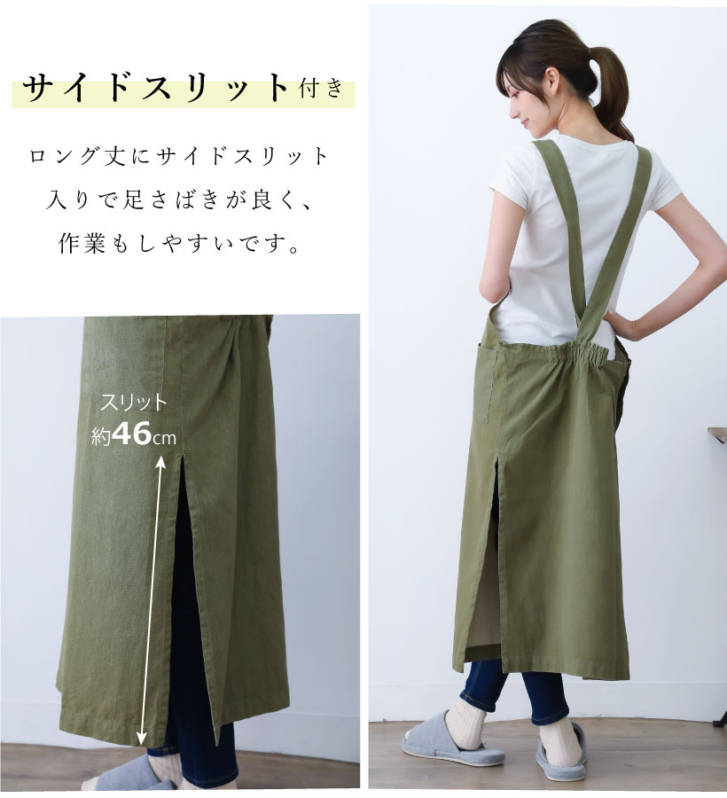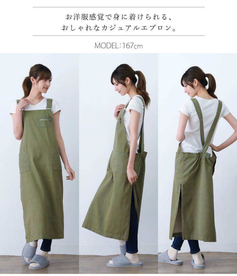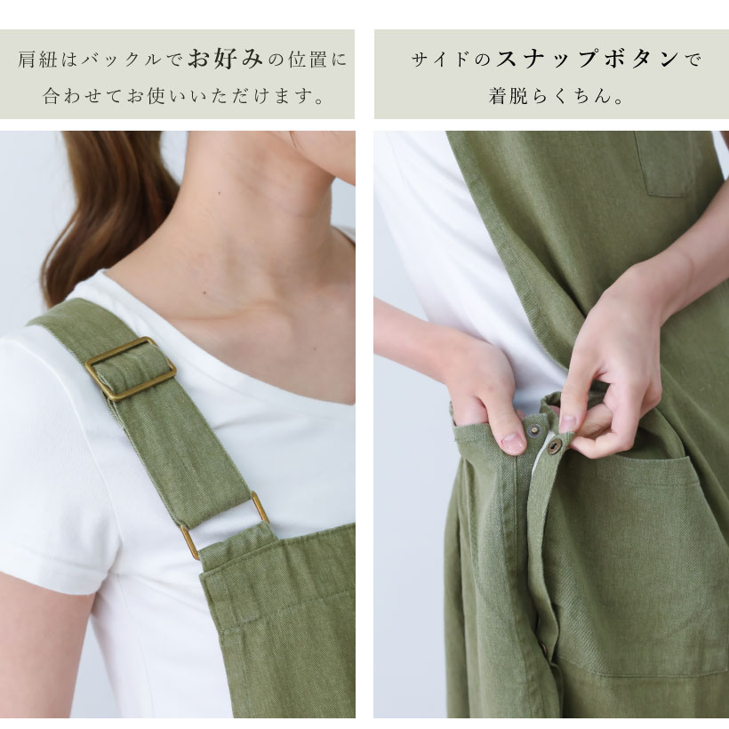| シャンブレー素材の軽やかな脇ボタンエプロン。無地のくすみカラーが大人かわいいデザイン。大きいポケット2つと、ゆったりとした脇ぐりで快適な着心地です。家事はもちろん、お仕事着としてもおすすめです。 | |