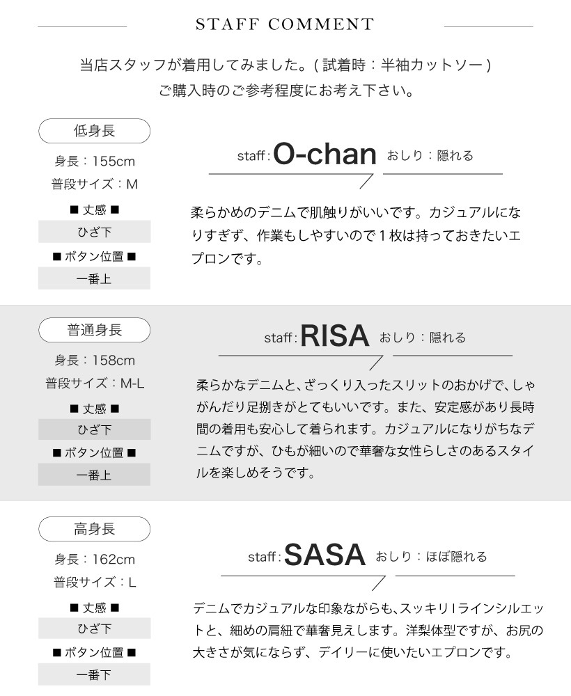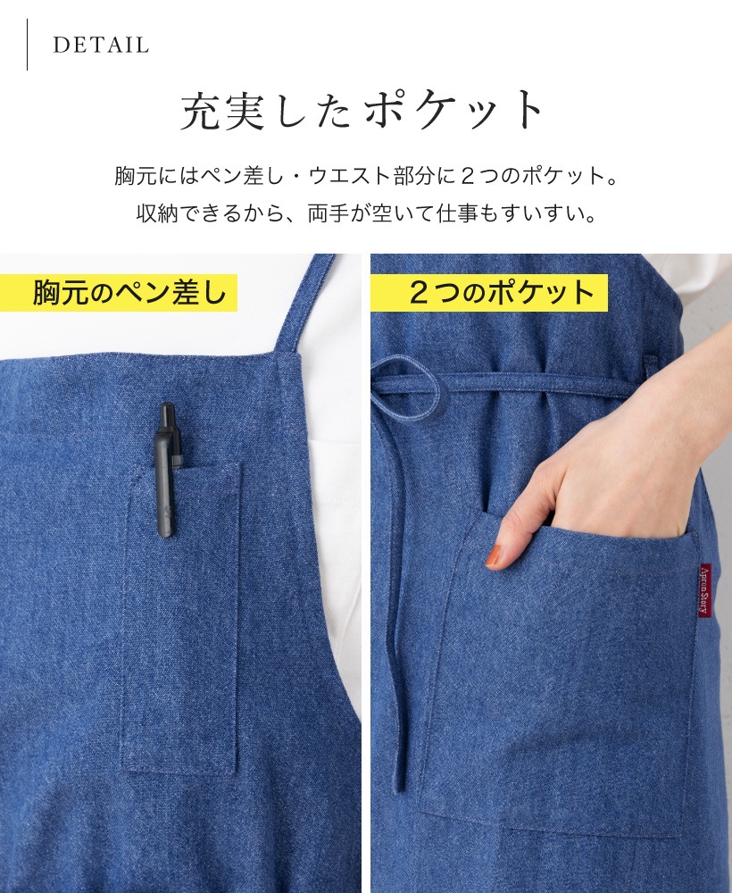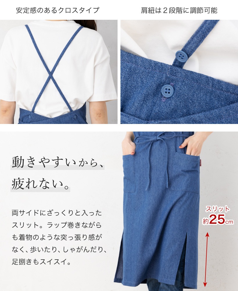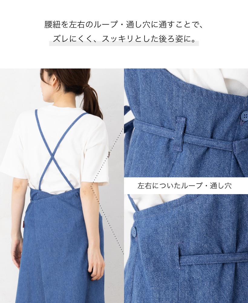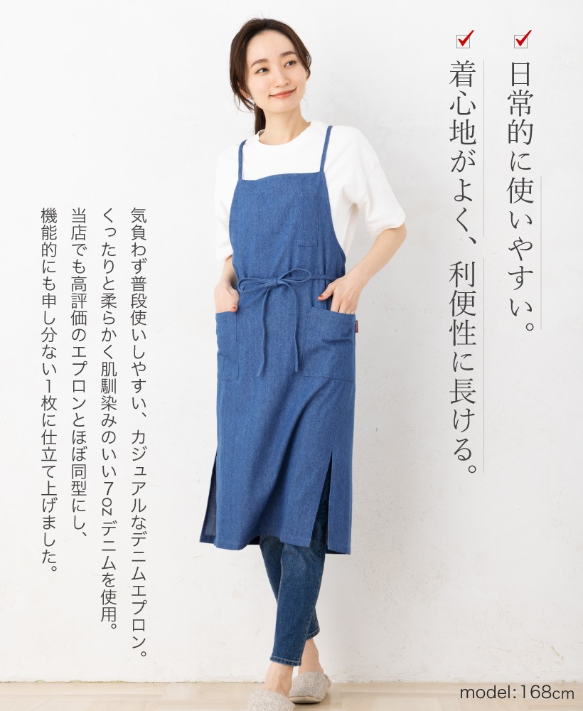 | くったりと柔らかく、肌馴染みのいい7ozデニムを使用したラップエプロン。裾の両サイドにざっくり入ったスリットで動きやすさを確保。ウォッシュ・ブリーチ加工をそれぞれに施し、風合いのいいデニムは普段使いにもぴったり。香川県の工場で丁寧に縫製する高品質なエプロンは、プレゼントとしてもおすすめです。 | |