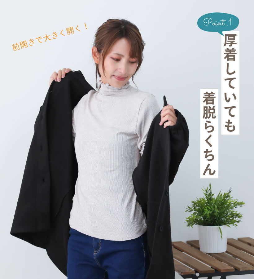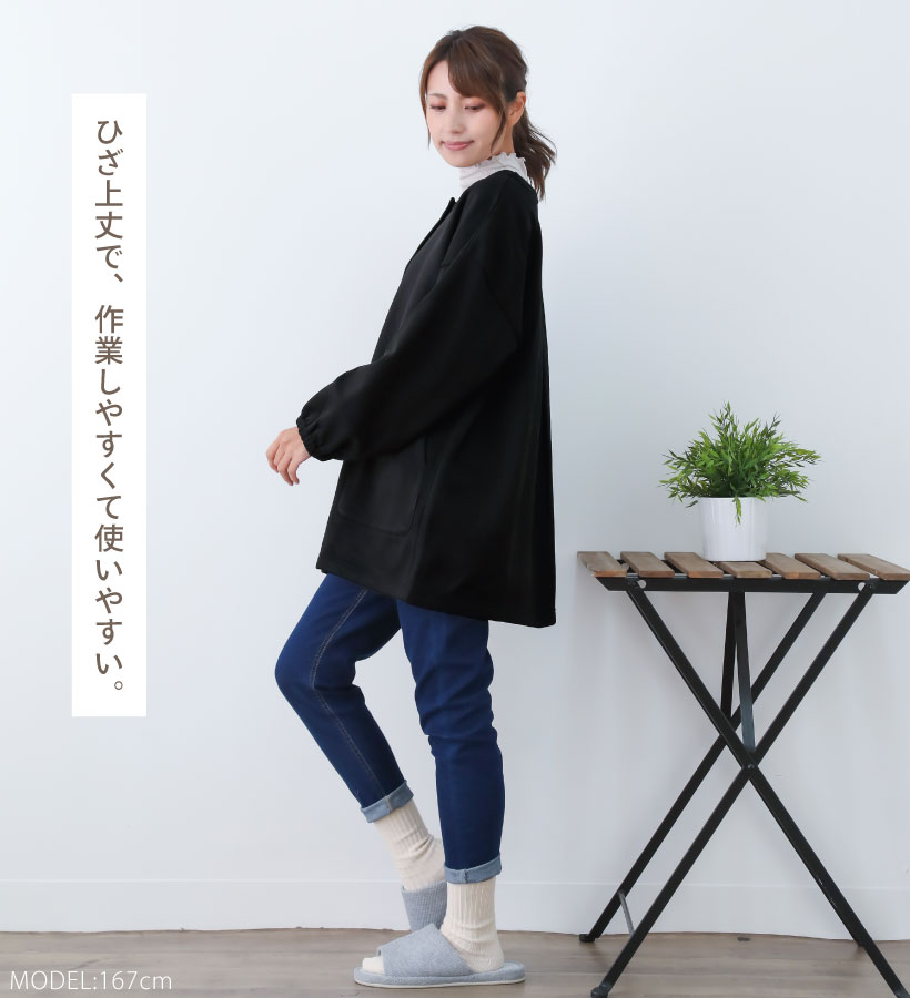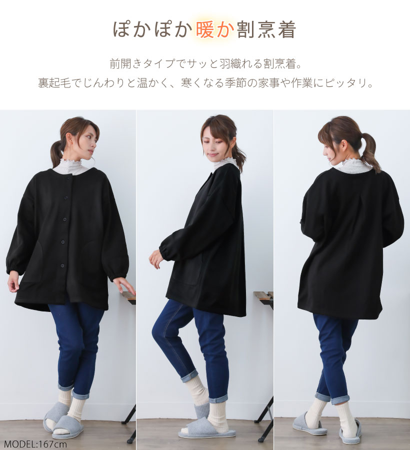 | 洋服のように着られるファッショナブルな割烹着。 ゆったりとした着心地なので、下に着るものを選ばない。 前面が裏起毛で 冷える腰や肩もあったか。前開きで着脱もかんたん!割烹着としてはもちろん、防寒対策にも◎ デイリーにお使いいただけるおすすめカッポーギです。 | |