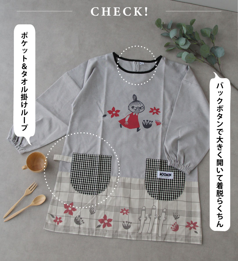 | ムーミン谷の仲間たち のかわいいスモックエプロン!スマホがすっぽり入って使いやすい2つのポケットに、タオル掛けループがついて実用性バッチリ◎シワになりにくいさらりとした生地感は、毎日のお手入れもラクチン!保育士・介護士さんにおすすめです。 | |