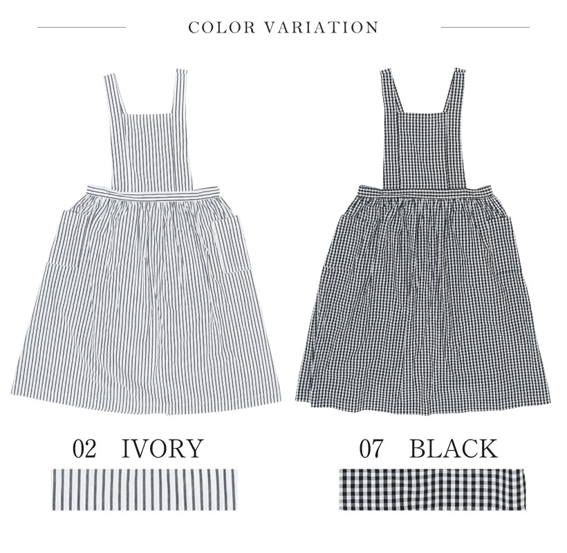 | エプロン ワンピース ふんわり ゆったり リボン ウエスト調整 ポケット 綿 コットン ナチュラル 可愛い 大人 シンプル モノクロ M L アイボリー ブラック ストライプ チェック NAP1643 | |