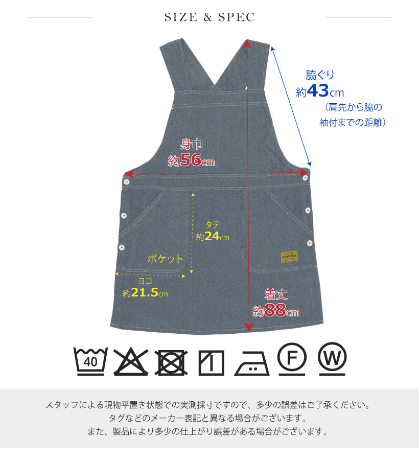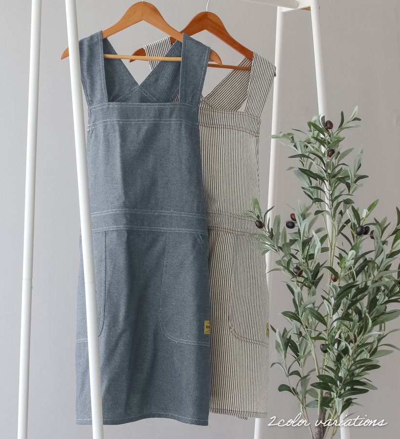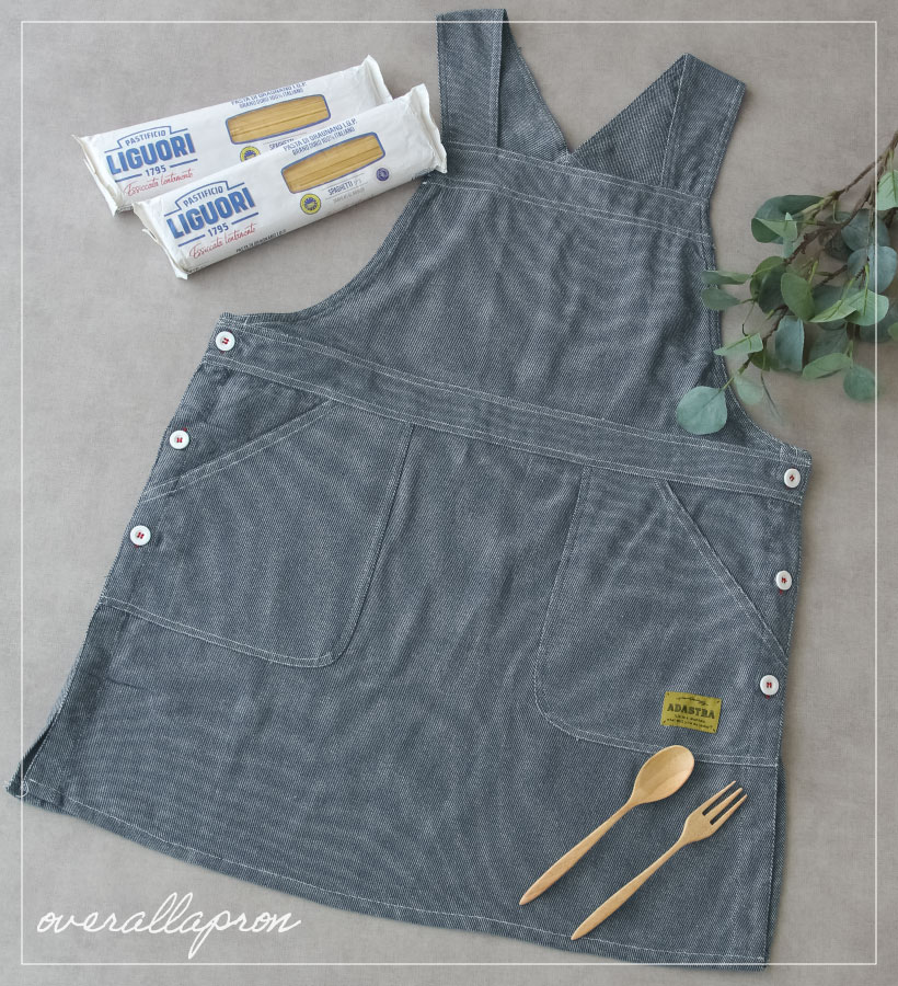 | デニムライクな綿素材のサロペットエプロン。どんなテイストの雰囲気でも合わせやすいマルチなデザイン◎ポケット部分ににワンポイントの織ネームがアクセント。 脇ボタンで着脱簡単で、お料理でも作業でも使えるエプロンです。肩の幅が広いのでエプロンがずり落ちません。 | |