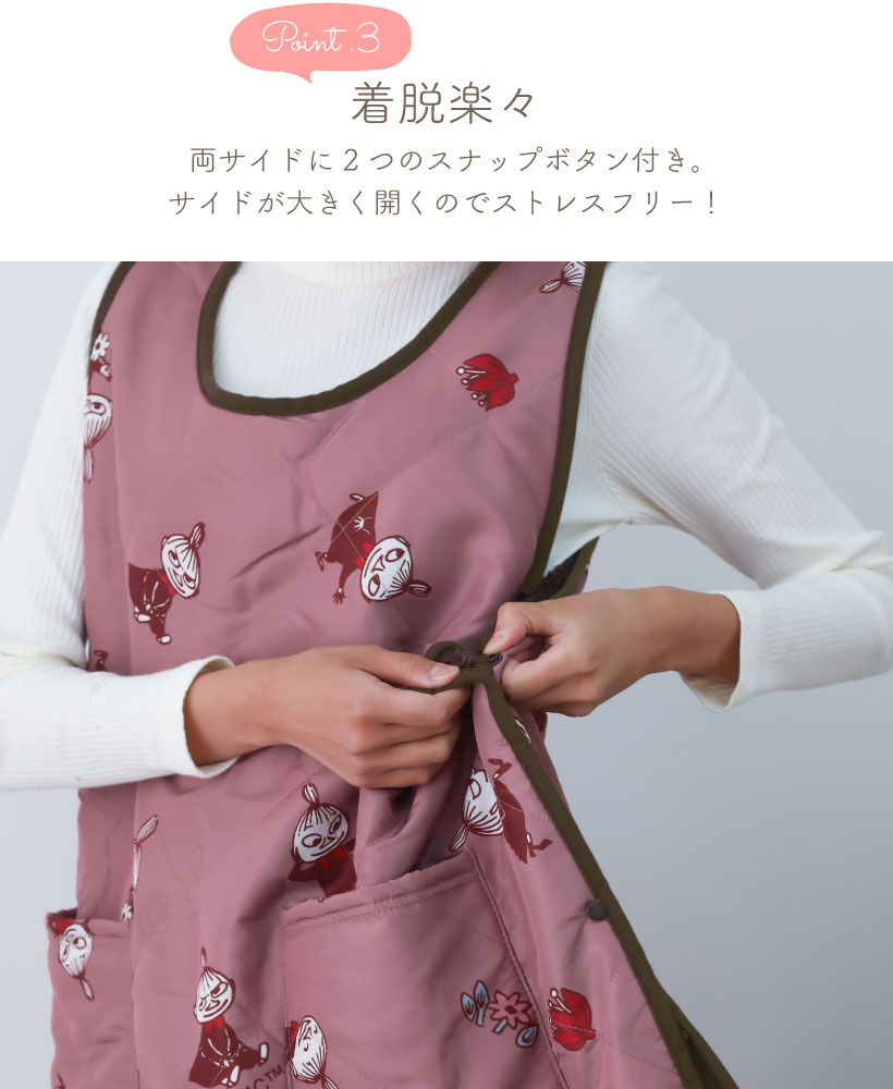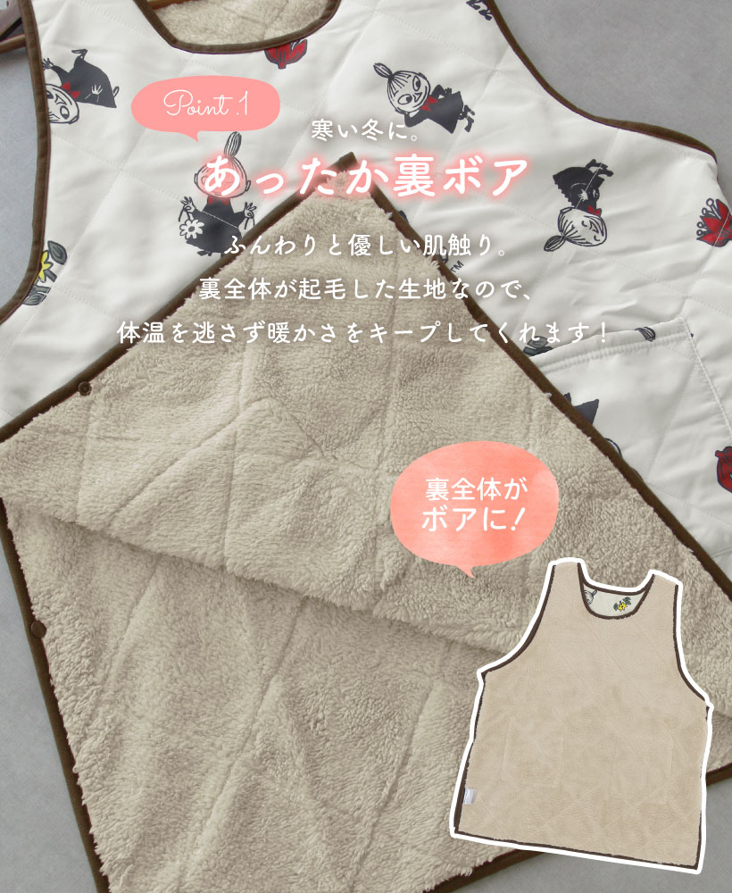 | ムーミン リトルミイ エプロン カバーエプロン 袖なし キャラクターエプロン あったかエプロン 暖かエプロン 暖かい あったか 秋 冬 裏ボア 裏起毛 ボア 起毛 ポケット サイドボタン スナップボタン ゆったり 可愛い かわいい 寒さ対策 防寒対策 着脱楽々 ストレスフリー 丈短め ピンク アイボリー シンプル 落ち着いた 大人 | |